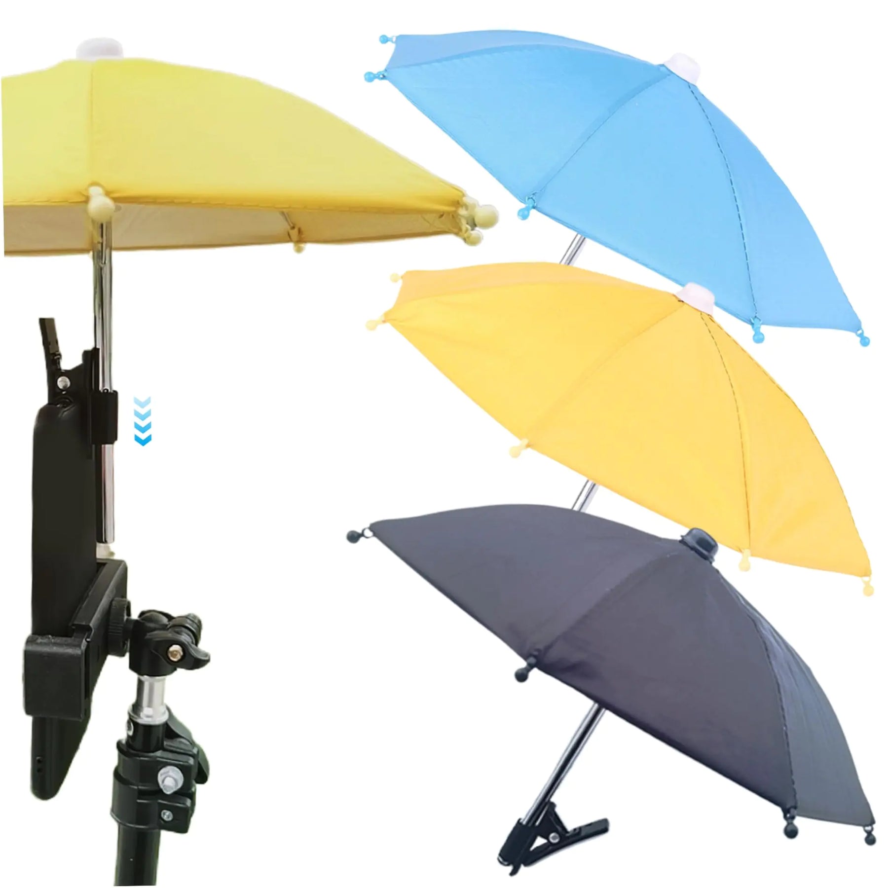 Description:The phone umbrella is a versatile and practical accessory that offers multiple advantages for your phone. Its multi-functional design helps shield your phone from sunlight reducing glare and preventing overheating. It can also be used as a mini umbrella to protect your phone from rain. Made with quality metal and fabric materials it is wear-resistant and easy to clean. The optimal size and adjustable clip height ensure sufficient coverage and compatibility with various phone sizes. Each package contains three phone umbrellas in different colors providing quantity and affordability. The clip-on installation design is simple and convenient. Whether youre outdoors for work or leisure this phone umbrella is suitable for various scenarios offering protection and convenience. Keep your phone safe from the elements while enjoying outdoor activities live streaming or watching videos with this versatile and practical phone umbrella.Features:.Phone Umbrella.-Color: Black Yellow Light Blue.-Material: Metal Fabric.-Size:Diameter: about 28cm/11.02inch.Height: about 19cm/7.48inch.Clip Height: Adjustable.Note:Manual measurement please allow slight errors on size.The colors may exist slight difference due to different screens.Package Including3 Pieces Phone Umbrellas.